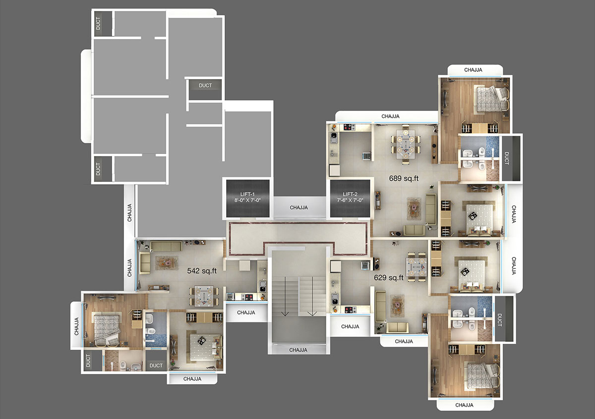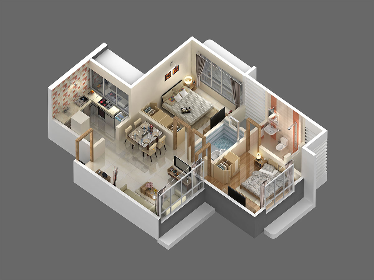 We create Photo realistic images like Perspectives, isometric and orthographic floor-plans, site plans, and walk-through. At the core all of our works are developed to highlight all the finer aspects of space, design and architecture..